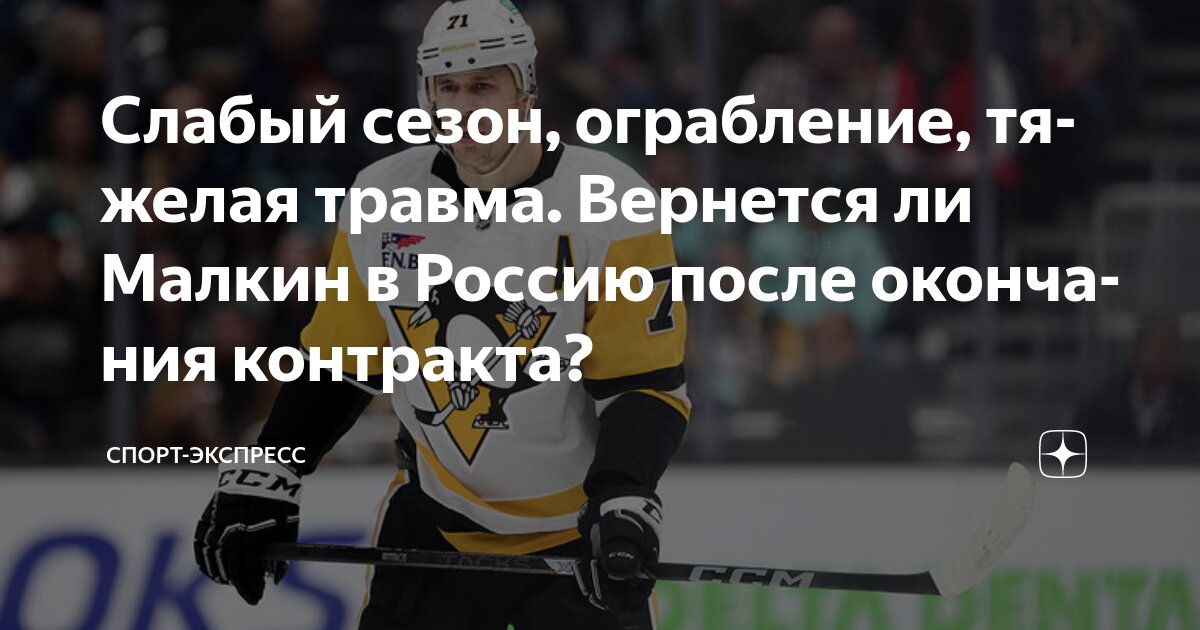 Если генеральный менеджер Кайл Дубас срочно не исправит ситуацию, уже через год мы можем увидеть Малкина в форме магнитогорского «Металлурга». Возвращение в Россию становится все более вероятным вариантом для завершения карьеры прославленного хоккеиста.