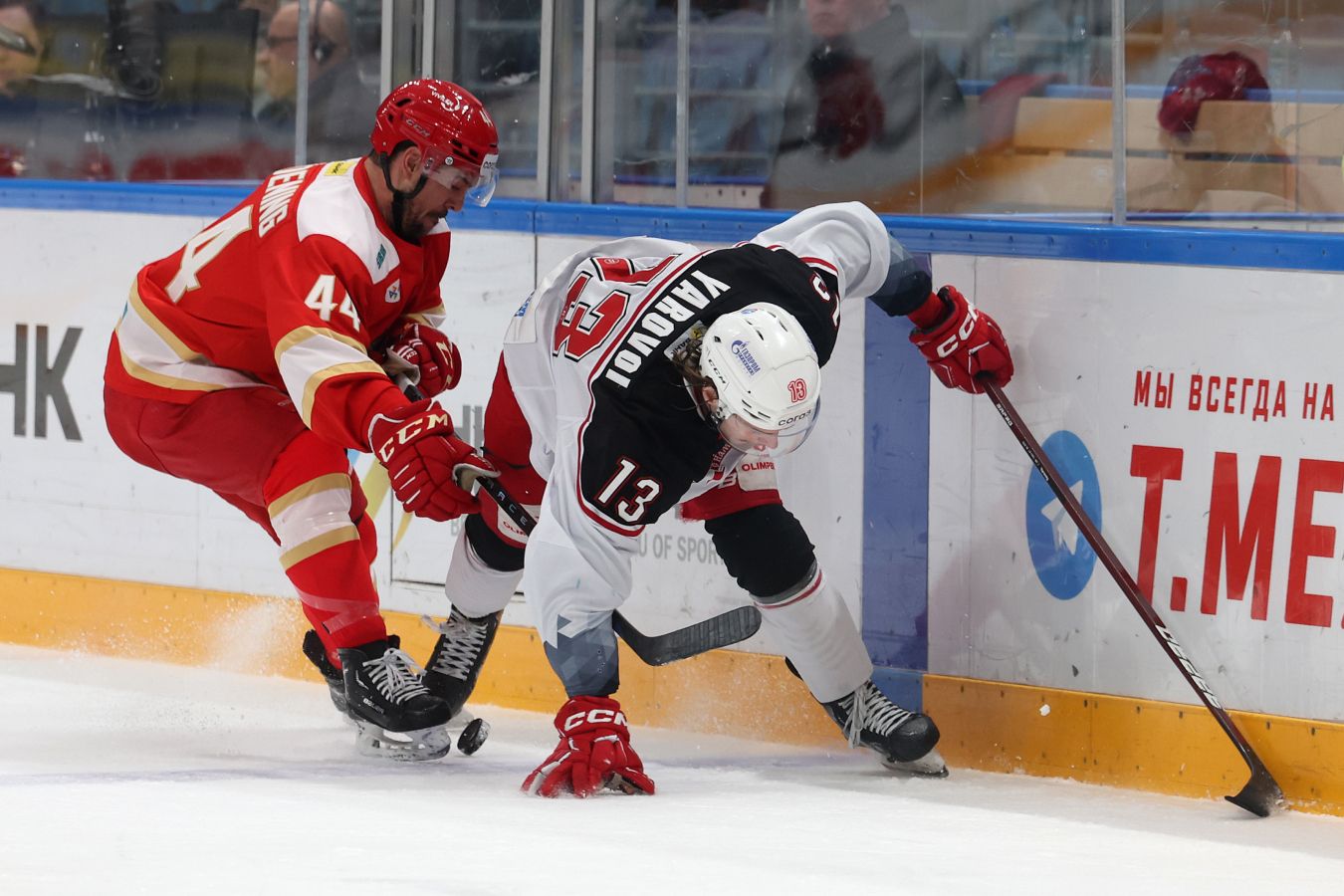 Хозяева льда открыли счет уже на второй минуте встречи усилиями Шуай Фу. Однако гости быстро отыгрались и даже вышли вперед благодаря голам Ярослава Бусыгина и Станислава Ярового. К первому перерыву команды подошли при равном счете 2:2.